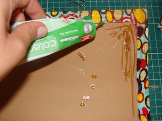 Colei o tecido com a cola de contato.Cola no papel e no tecido.